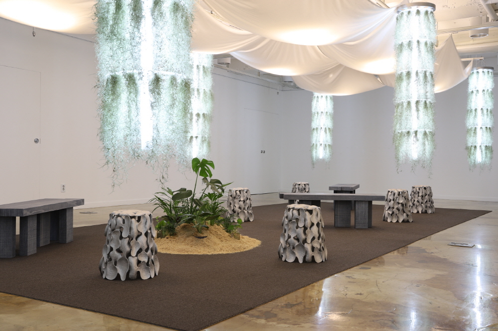이번 전시는 작품을 바라보기만 하는 것이 아니라 관객들이 직접 작품을 만져보고 앉아보며 식물과 교감하는 시간을 보낼 수 있도록 구성하였다.