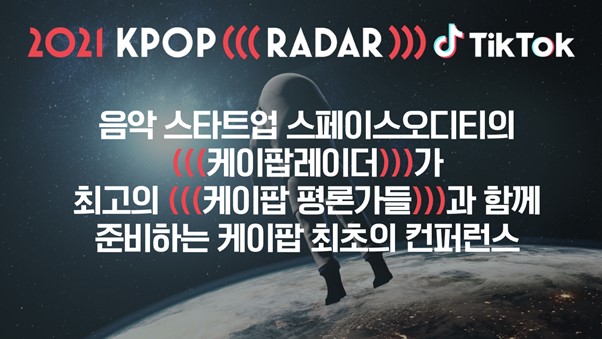 [플레이뉴스 문성식기자] 음악 스타트업 스페이스오디티 (대표 김홍기)는 오는 11월 ‘케이팝 최초의 컨퍼런스’인 ‘2021 KPOP (((RADAR))) TIKTOK’을 개최한다고 밝혔다.