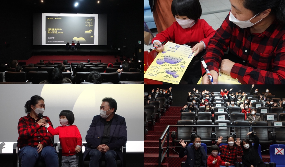 이번상영전에는박강아름감독과영화에출연한남편정성만씨, 딸정보리강양이함께참석해관객들과소통하는시간을가졌다.