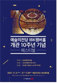 | 2011년 10월 5일 개관한 IBK챔버홀이 10주년을 맞이하여, 이를 기념하여 3일간 'IBK챔버홀 개관 10주년 기념 페스티벌'을 개최한다. 실내악에 최적화된 전용 연주홀로서 10년 간 많은 연주자들과 관객들에게 사랑받은 만큼 다양한 규모와 출연진들로 다채롭고 풍성한 페스티벌을 선보일 예정이다. |