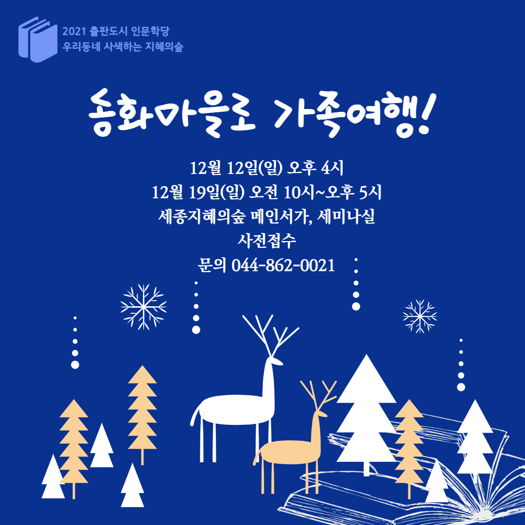 ‘우리 동네 사색하는 지혜의숲’을 테마로 진행되는 올해의 마지막, 12월 인문강좌에서는 ‘환상적인 동화 속으로 가족이 함께 떠나는 여행’을 주제로 조혜란 그림책 작가, 김윤희 그림책 지도사, 최재경 그림책테라피스트, 이근영 피아니스트가 함께 한다.