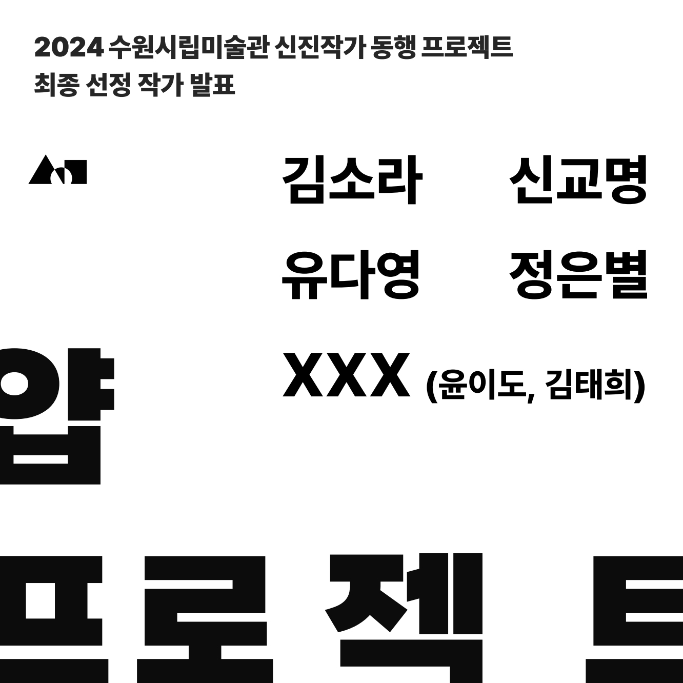 수원시립미술관 관계자는 “작가 선정 과정에서 젊은 예술가들의 열정과 고민을 확인할 수 있었다”라며 “본 프로젝트가 젊은 작가의 에너지를 펼칠 수 있는 유의미한 장이 되도록 최선을 다할 것”이라고 덧붙였다.