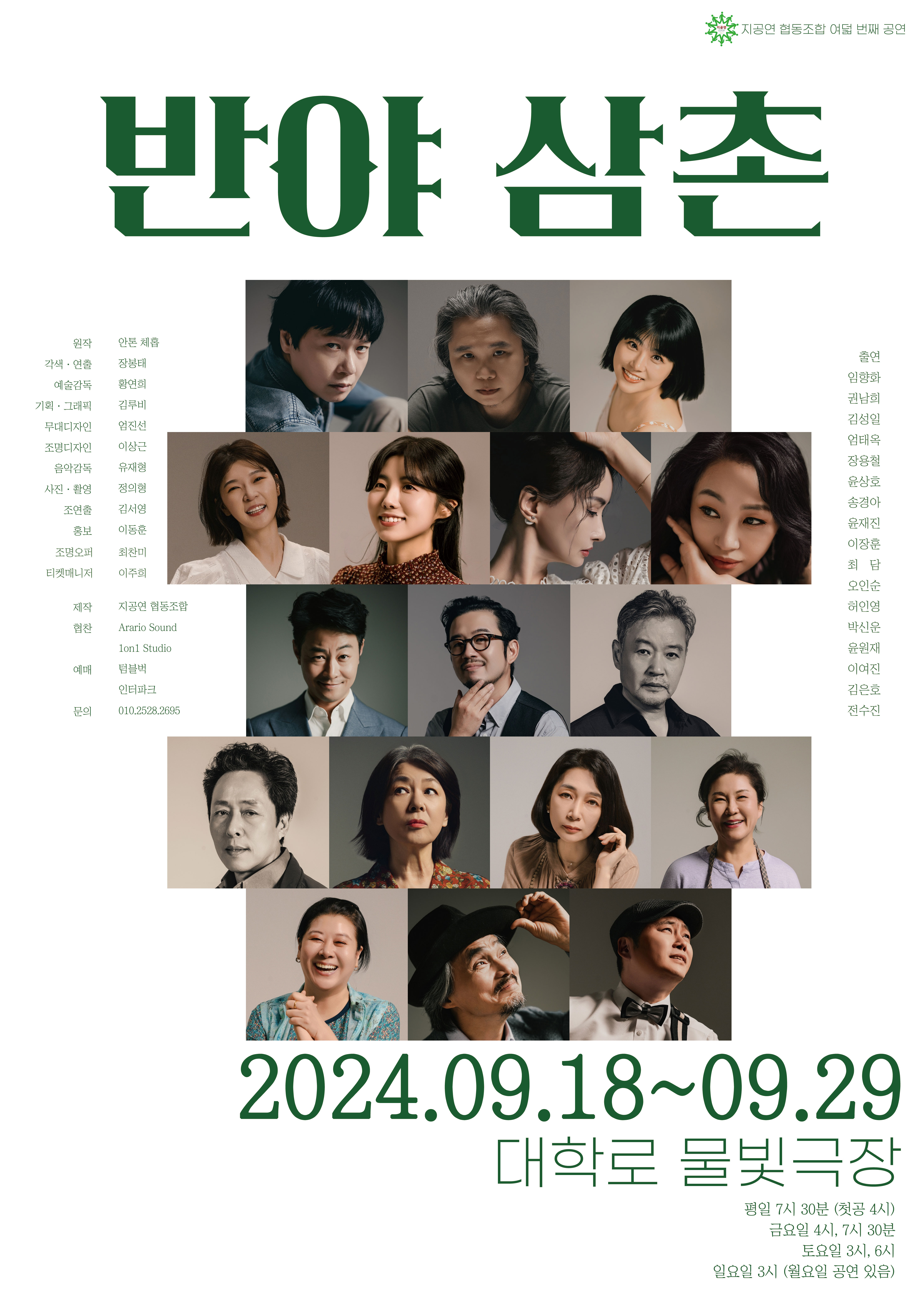 [플레이뉴스 문성식기자] 지공연 협동조합에서 제작하는 2024년 초연 신작! 연극 '반야 삼촌'이 오는 9월 18일 대학로 미마지아트센터 물빛극장에서 막을 올린다.