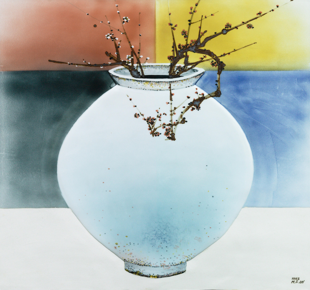 한편 이번 전시에 출품된 100호 달항아리는 5일 동안의 가마 불을 10일로 늘려 작가의 모든 기법과 상상력이 동원된 작업으로 이전의 작품과는 확연히 다르게 도자회화의 진수를 보여주고 있고 앞으로의 대작에 대한 열망을 예고하고 그에 대한 준비와 계획을 작가는 밝히고 있다.